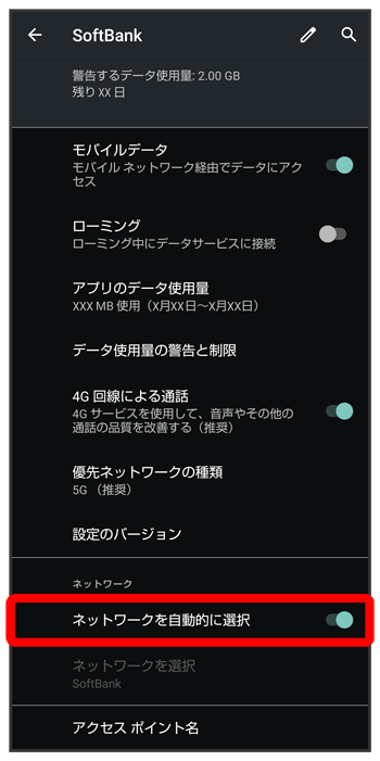 - 自動的に適切な通信事業者に接続するように設定するときは、再度、をタップします(