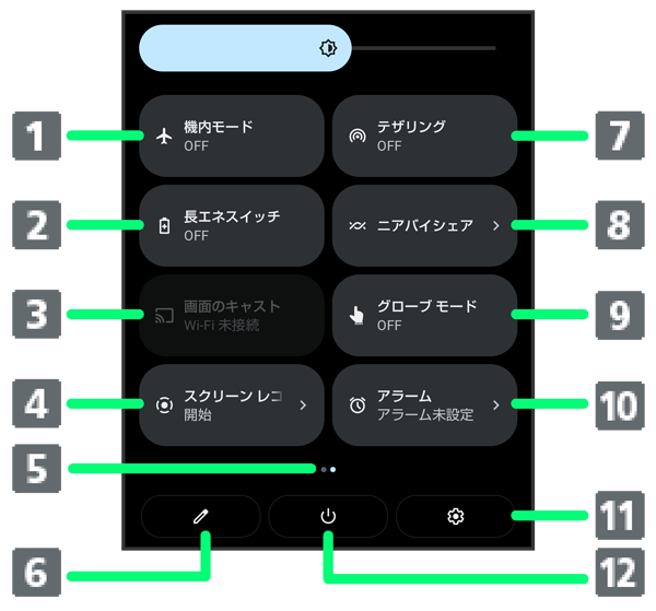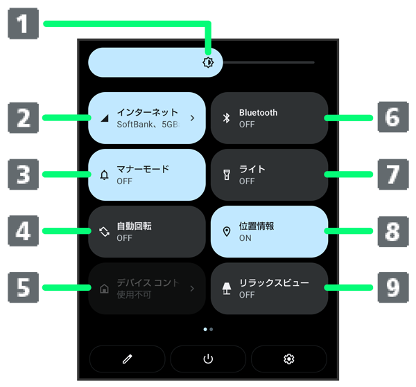 クイック設定パネルの見かた