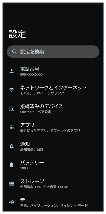 | アプリ | 「アプリと通知」の一部の項目が「アプリ」として追加されます。 が追加され、数ヵ月使用していないアプリを整理して空き容量を増やしたり、権限の削除が行われます。 の項目が一部変更されます。が削除されます。設定する場合は、設定するアプリを選択「バッテリー使用量の管理」から設定してください。 |