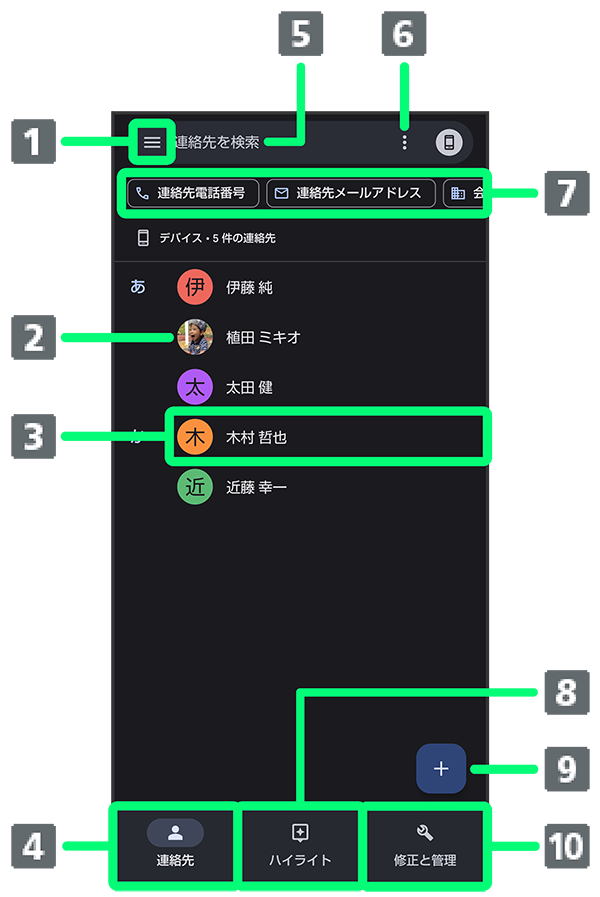 - 連絡先を電話番号やメールアドレスなどでフィルタリング