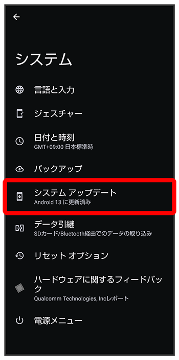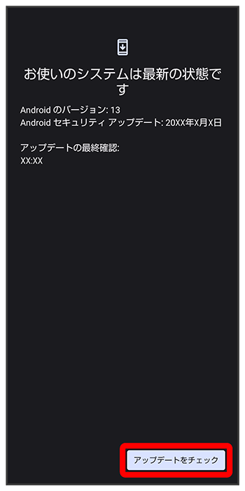 - システムアップデートが進むと最後にが表示されます。タップして、システムアップデートを完了させてください。