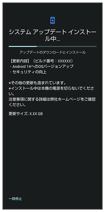 - システムアップデート中もほかの機能を使用できます。ただし、システムアップデートの通知後10日間は、システムアップデート中にほかの機能を使用していると、アップデートのインストールが一時的に停止されます。をタップすると、インストールが再開され、ほかの機能も使用可能になります。