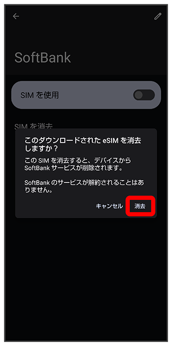eSIMを消去した場合でも、ご契約が解除されたわけではありません。