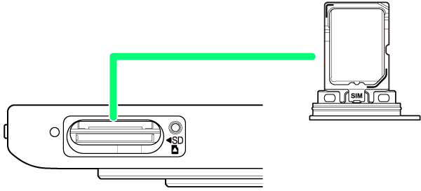 SIMカードトレイ挿入口に、カードトレイを差し込む