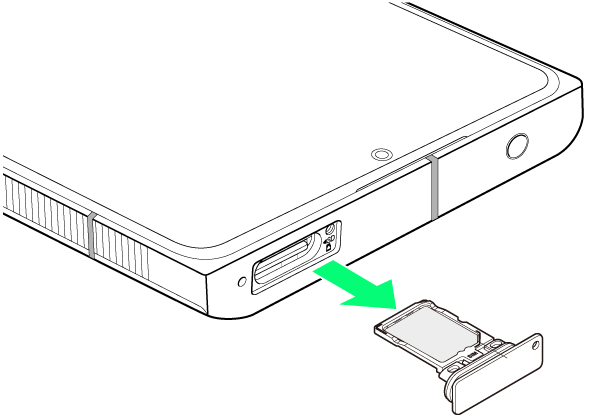 - ディスプレイを上にして、カードトレイを引き出してください。ディスプレイを下にしたり、本機を立てた状態でカードトレイを引き出すと、SIMカードがカードトレイから外れ、紛失する可能性があります。