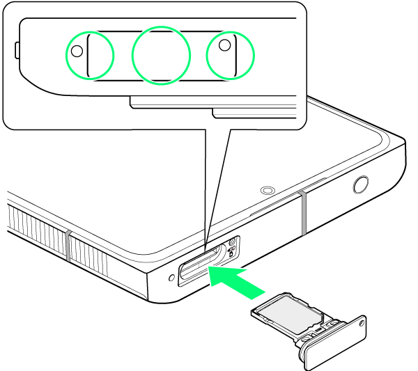 SIMカードトレイ挿入口に、カードトレイを差し込む
