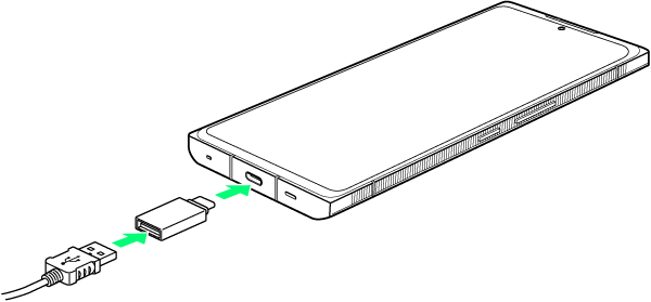 用意したケーブルを、これまでお使いのスマートフォンに接続する