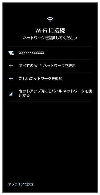 - モバイルネットワークを使用して初期設定を行うときは、を選択します。以降は、画面に従って操作してください。