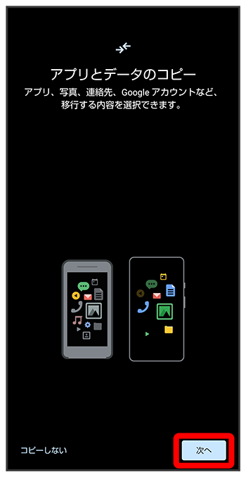 - ほかの端末などからデータをコピーしないときは、をタップします。