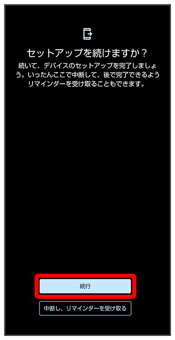 - 初期設定を中断し、あとでリマインダーを受け取るときは、をタップします。