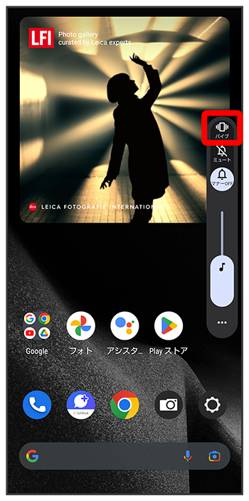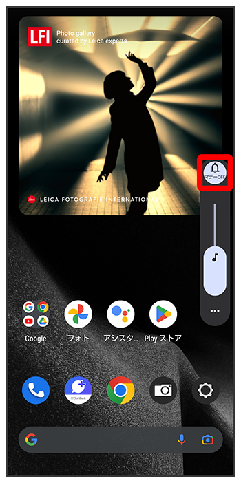 音量Upキー/音量Downキーを押して音量バーを表示させ、マナーモードが解除されます。