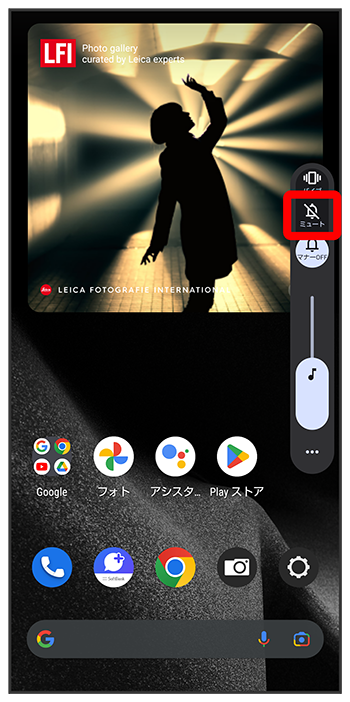 クイック設定パネルからマナーモード(ミュート)を設定することができます。