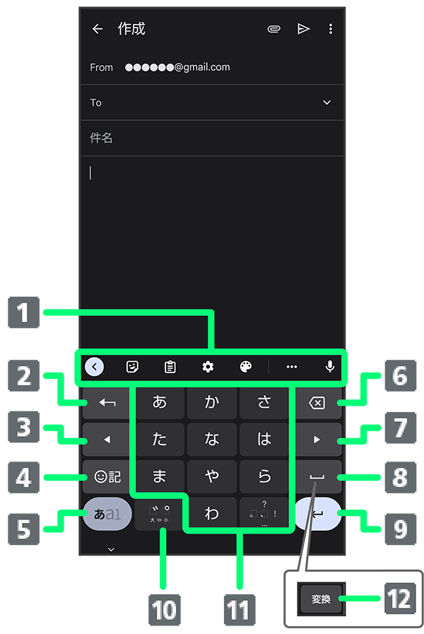 - 表示するアイテムを変更することもできます。詳しくは、「ツールバーについて(Gboard)」を参照してください。