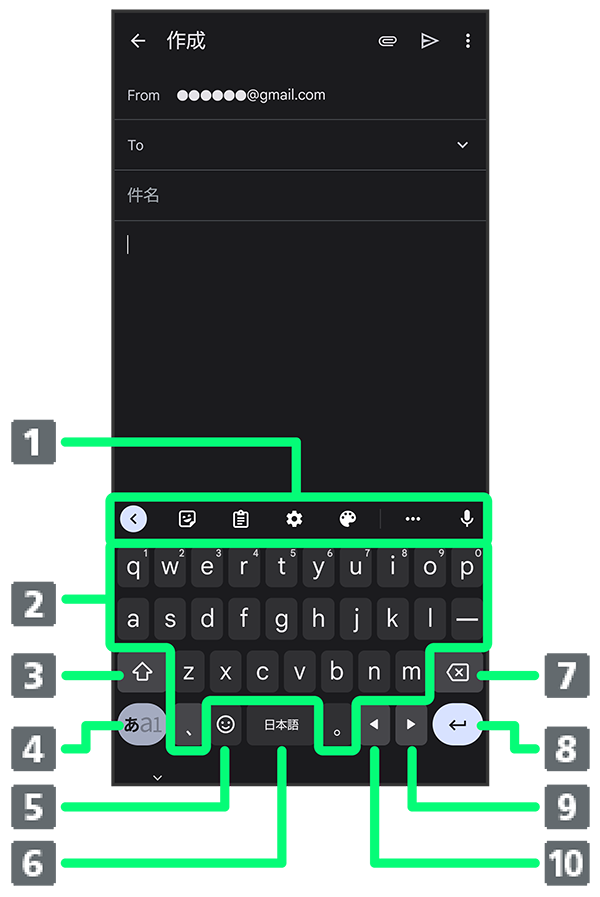 - 表示するアイテムを変更することもできます。詳しくは、「ツールバーについて(Gboard)」を参照してください。
