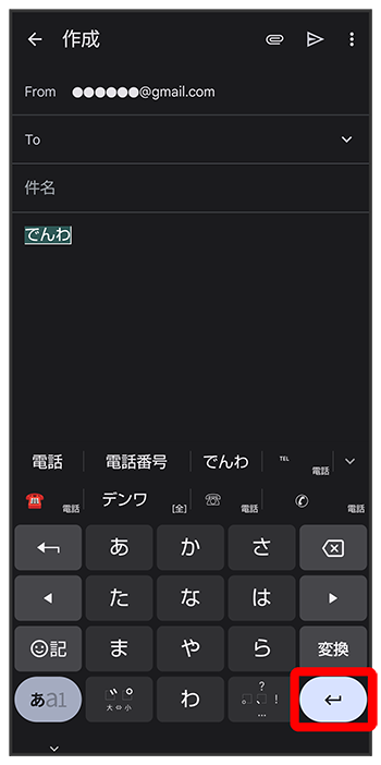 をタップしたあと、次の文字を入力します。入力した文字の背景色が変わったあとは、そのまま次の文字が入力できます。 - キーをくり返しタップせず、キーをロングタッチしたときに表示されるキー入力ガイドを利用して文字を入力することもできます。詳しくは、「フリック入力について」を参照してください。