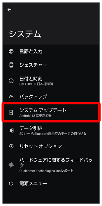 システムアップデートが必要なときは、通知が表示されます。通知をタップし、画面に従って操作してください。通知が表示されない場合などは、次の手順で必要かどうかを確認してアップデートできます。