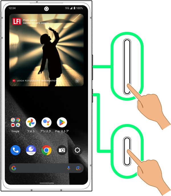 (フォト)などから確認することができます。 - スクリーンショットを撮ったあと、をタップすると、撮った画面に表示されていない領域まで、範囲を拡大/縮小して保存できます。画面に従って操作してください。画面によっては対応していない場合があります。