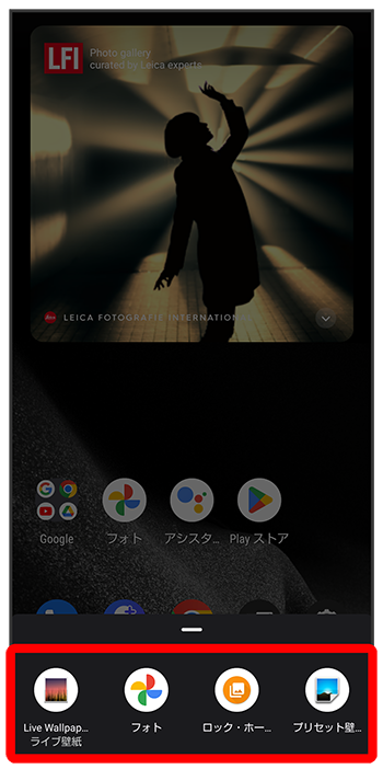 ホーム画面のアイコンがない場所をロングタッチ/(- 選択した画像がランダムで表示されます。