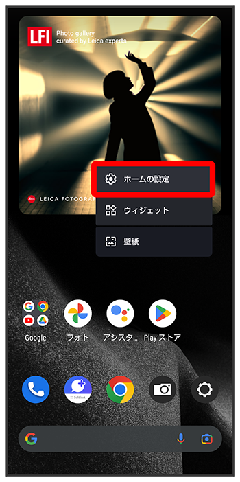 | Google アプリの表示 | ホーム画面の左端に、ニュースや天気などの情報を表示するかどうかを設定します。 |