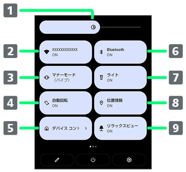 クイック設定パネルの見かた
