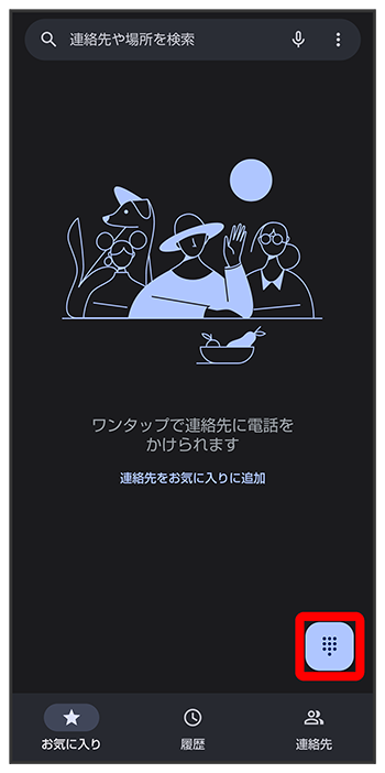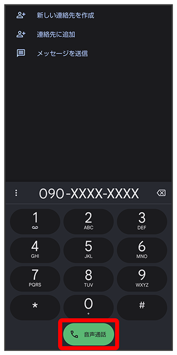 ダイヤルキーをタップして相手の電話番号を入力