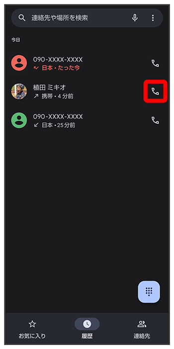 通話履歴から電話をかける