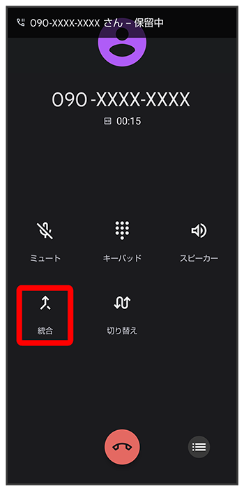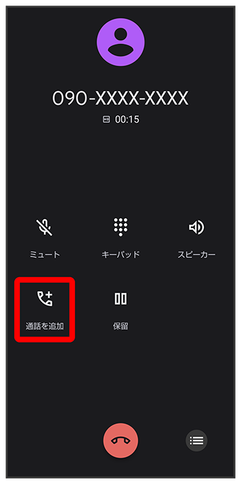 - 電話番号発信画面の上部を下にフリック通話を追加する連絡先をタップ通話を追加する電話番号をタップと操作しても、通話を追加できます。