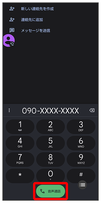 - 電話番号発信画面の上部を下にフリック通話を追加する通話履歴の