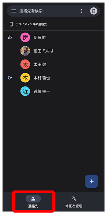 次の操作を行うと、サーバーに保存されたGoogleの連絡先と本機の電話帳を同期できます。Google アカウント以外と同期するときでも、あらかじめ、Google アカウントでログインしておいてください。