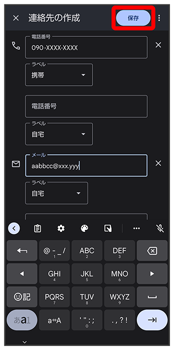 )が切り替わります。 - 新しい連絡先の作成画面でラベル名を入力と操作すると、新しいラベルを追加できます。