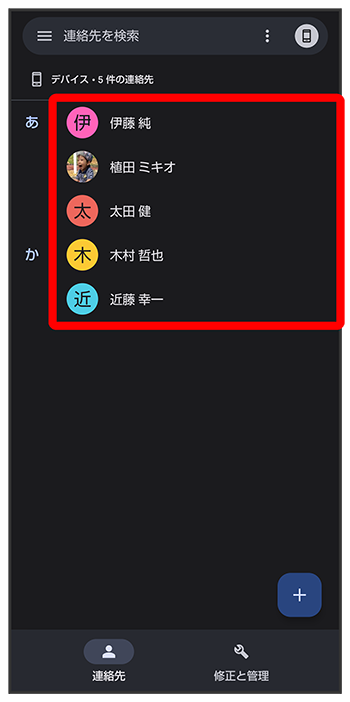 連絡先を確認する