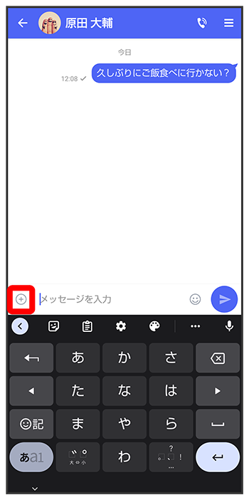 をタップすると位置情報が添付されたメッセージが送信されます。