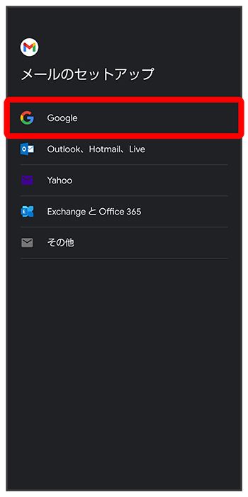 ここでは、Google アカウントを追加する方法を例に説明します。