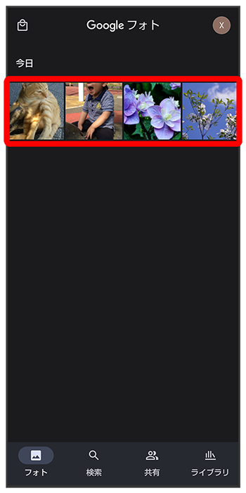 - フォト画面でと操作すると、アーカイブした写真/動画を確認できます。