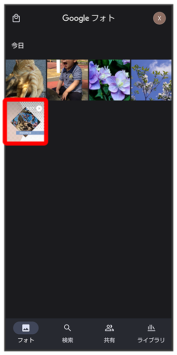 ショートムービー再生画面で画面をタップ//- 保存されていないパターンの動画を保存するときは、をタップします。