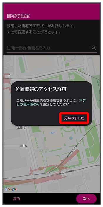 位置情報のアクセス許可画面が表示されたら