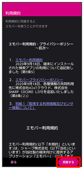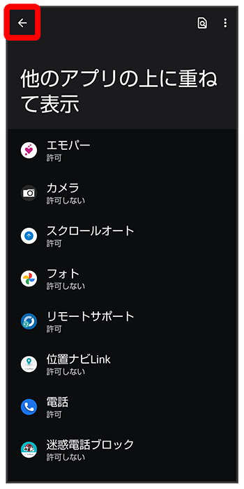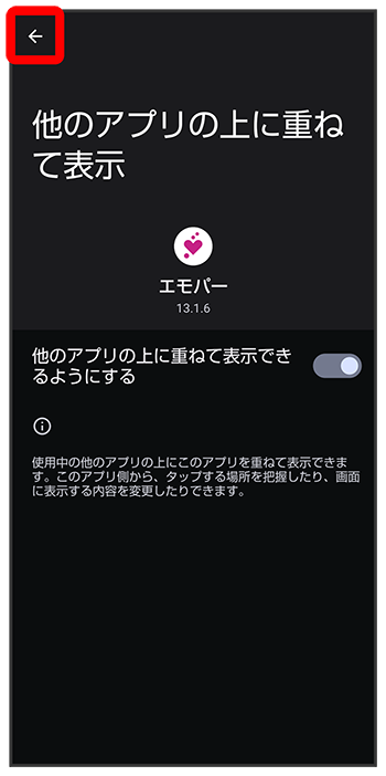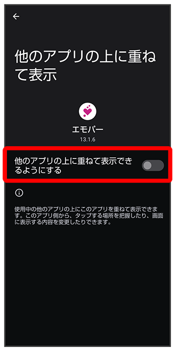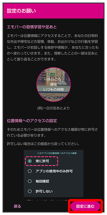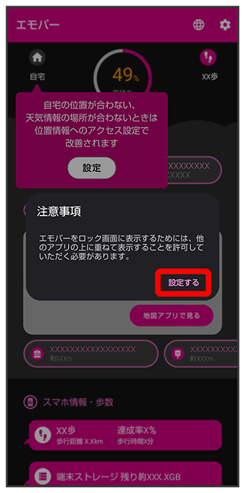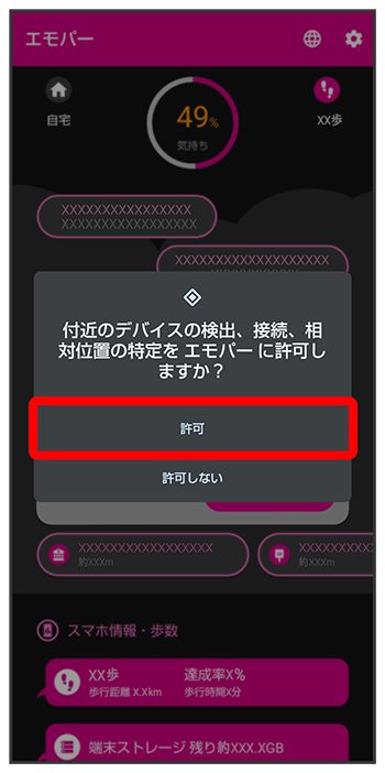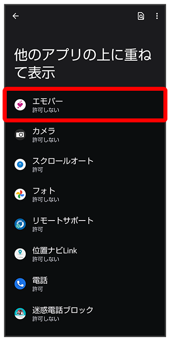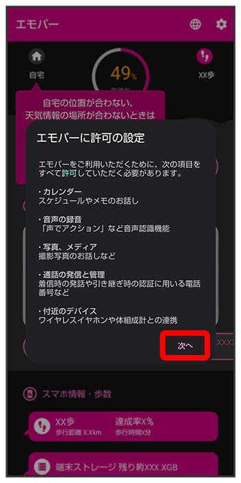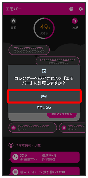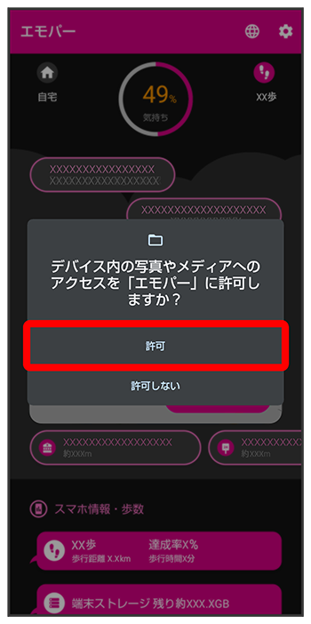 エモパーに許可の設定画面が表示されたら
