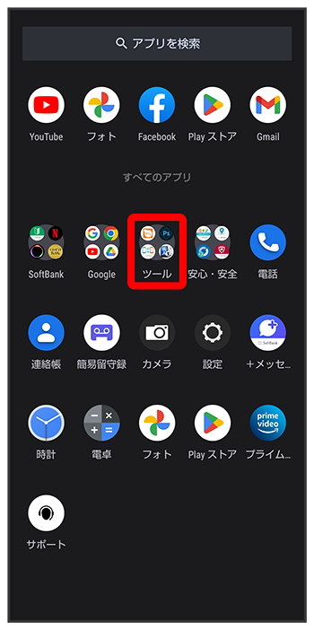 ホーム画面を上にフリック