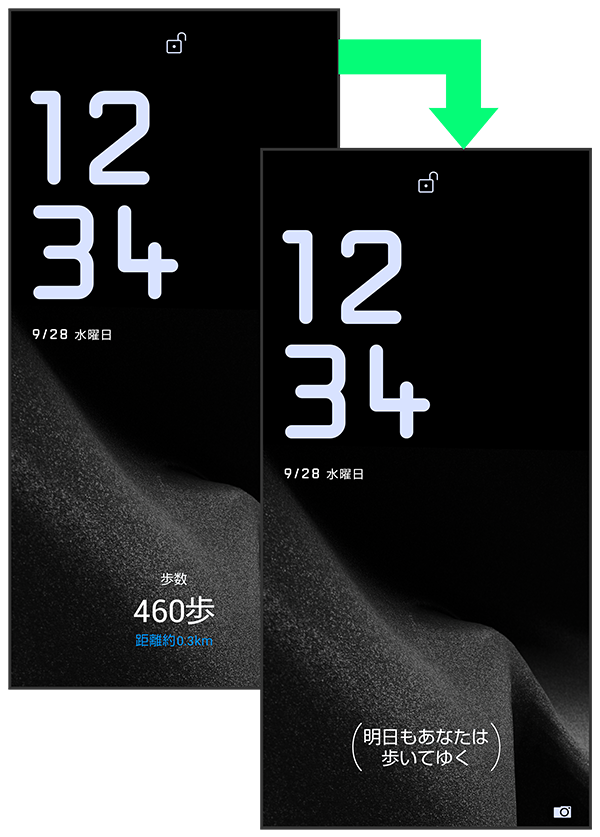 ロック画面では、エモパーがいろいろな情報をお知らせします。