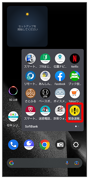 ホーム画面で緊急速報メールを利用するかどうかを設定する