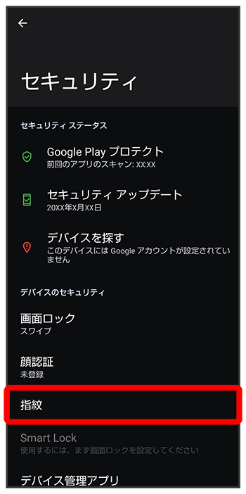 - 指紋センサーに指を触れたまま指紋の登録や認証を開始すると、起動できない場合があります。指を離し、再度操作してください。