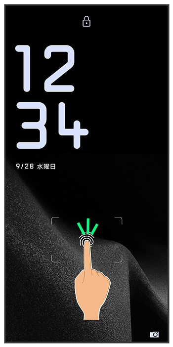 - が有効のときは、画面消灯(画面ロック)中に画面をタップして、指紋センサーを表示できます。また、が有効のときは、画面消灯(画面ロック)中でも指紋センサーに指を当てると画面ロックを解除できます。詳しくは、「ディスプレイ設定」を参照してください。