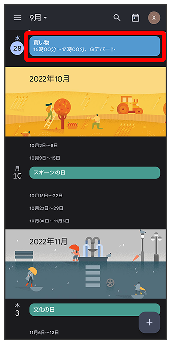 カレンダー画面で、月部分をタップ表示させたい日をタップこちらで検索できます