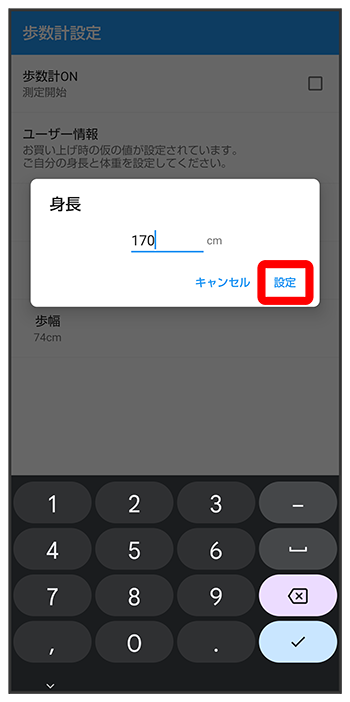 - お買い上げ時は、ユーザー情報に仮の数値が登録されています。ご利用の前に、ユーザー情報を正しく設定しておいてください。
