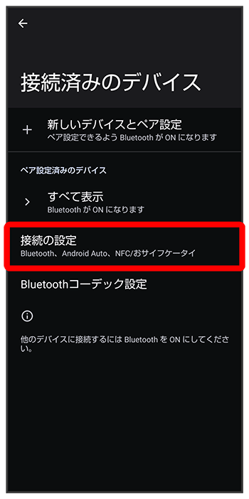 機内モードを設定していませんか。Bluetooth®機能を有効にした状態で機内モードを設定すると、いったん、Bluetooth®機能は無効になります。