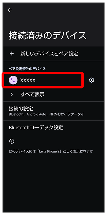 接続済みのデバイス画面で、ペア設定している機器のペア設定を解除する