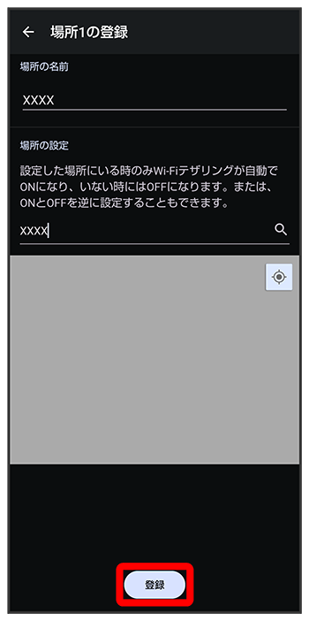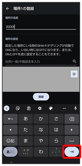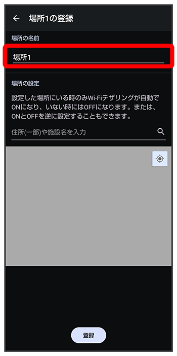 テザリングオート画面で場所の名前欄をタップ場所の名前を入力