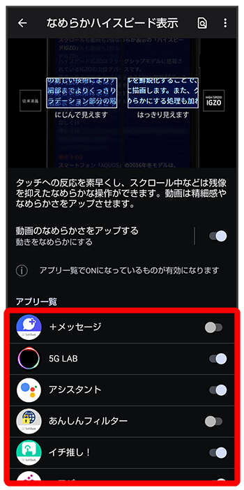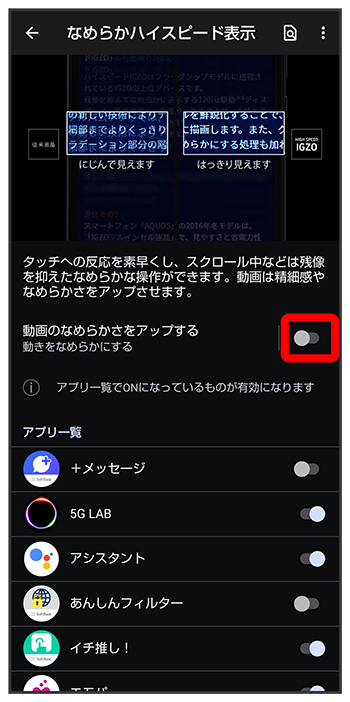 - アプリによっては効果が得られないことがあります。その場合は、設定を無効にしてください。また、電池残量や本体温度によっても、効果が得られない場合があります。
