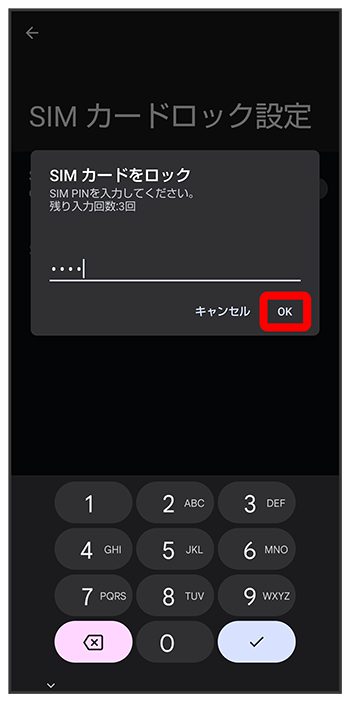 PINコードを操作するときや、SIMカードロック設定時に電源を入れたときは、PINコードの入力が必要になります。