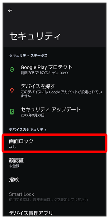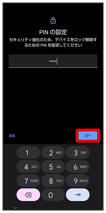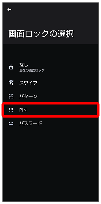 ロックNo.(PIN)で画面ロックを解除するように設定する